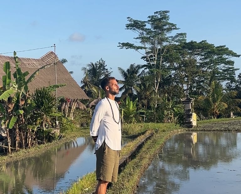 Conocí a Santi a través de sus clases privadas de Animal Flow, me ayudó a sentirme más cómoda con mi cuerpo, sin juzgarlo tanto, invitándolo solamente a fluir sin el juicio de lo correcto o lo incorrecto y entendiendo que de pronto la mente puede llegar a ser el mayor obstáculo. Posteriormente, emprendí con su ayuda un viaje de autoconocimiento, de su mano aprendí a calmar mi mente, a reafirmar que los límites los pone la mente, pero sobre todo a conocerme mejor, en mi parte más oscura y la más bella y brillante. Al término de ese viaje juntos, soltó mi mano, pero sus palabras permanecieron y de pronto me atreví a lo que nunca pensé, decidí dejar la rutina de mis días y dar una pausa para mí, para continuar conociéndome y descubrir el propósito de mi vida. Actualmente mis días han vuelto a lo habitual porque así lo elegí, pero desde una perspectiva muy distinta, y hoy puedo asegurar sin lugar a duda, que las circunstancias de vida nada sencillas que se han ido presentando, no podría enfrentarlas de la manera en cómo lo hago, si no hubiera conocido a Santi, pues gracias a él se me abrió un mundo de posibilidades y de perspectivas y cada día, sigo aprendiendo.